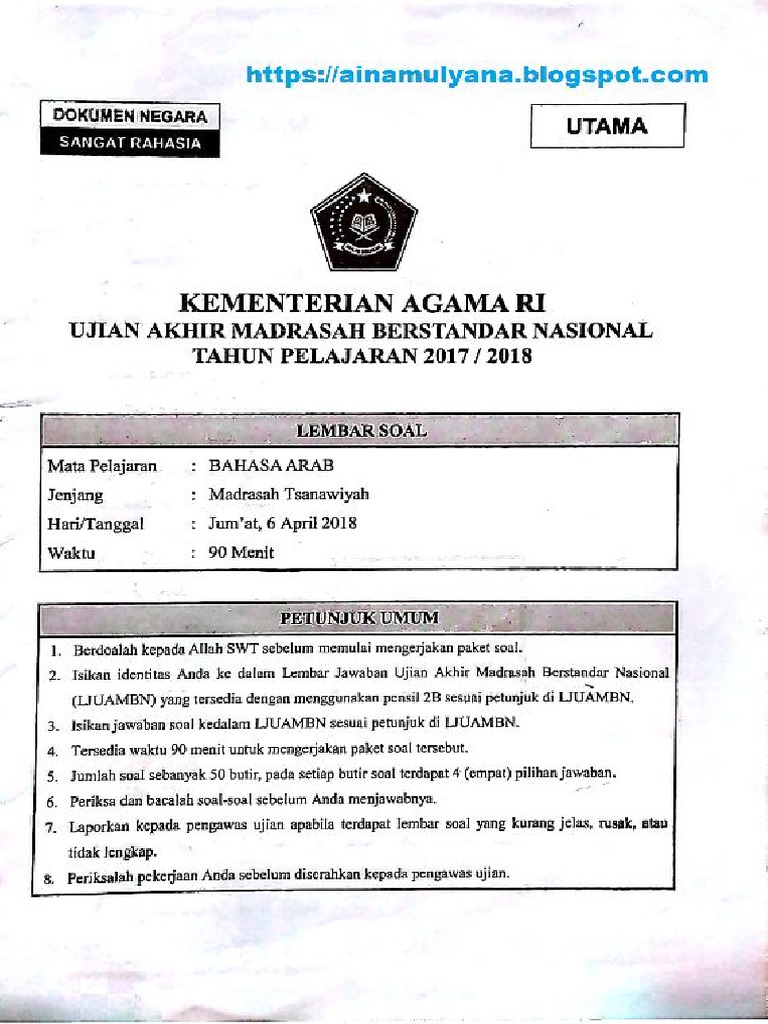 Latihan soal uambn bahasa arab mts tahun 2017/2018 ini merupakan soal yang mungkin anda butuhkan sebagai bahan latihan siswa anda dalam mempersiapkan diri menjelang uambn (ujian akhir madrasah berstandar nasional) tahun ini.
